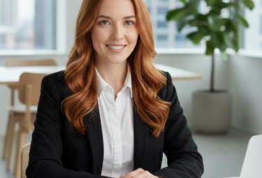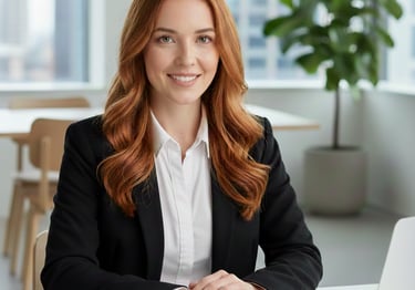 A professional headshot of Sarah K., a happy client of Patronus Law.